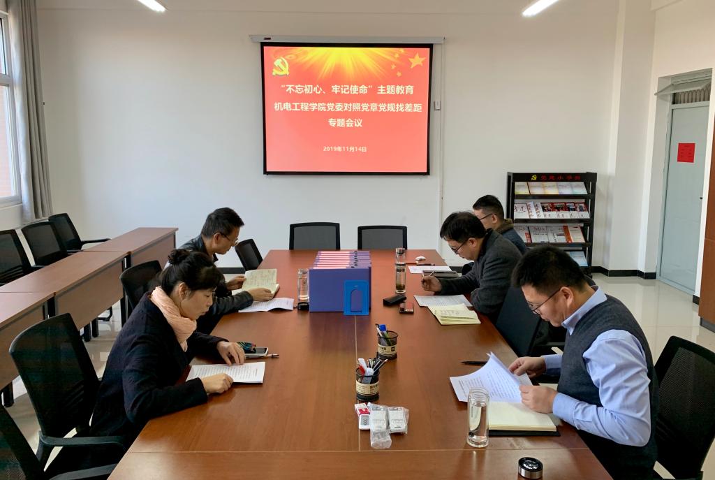 2019年11月14日,澳门十大信誉网赌大全党委在临潼校区笃行楼315党团活动室召开“不忘初心、牢记使命”主题教育对照党章党规找差距专题会议。学院党政领导班子成员、党委委员参加了会议。会议由学院党委书记王鸣媛主持。