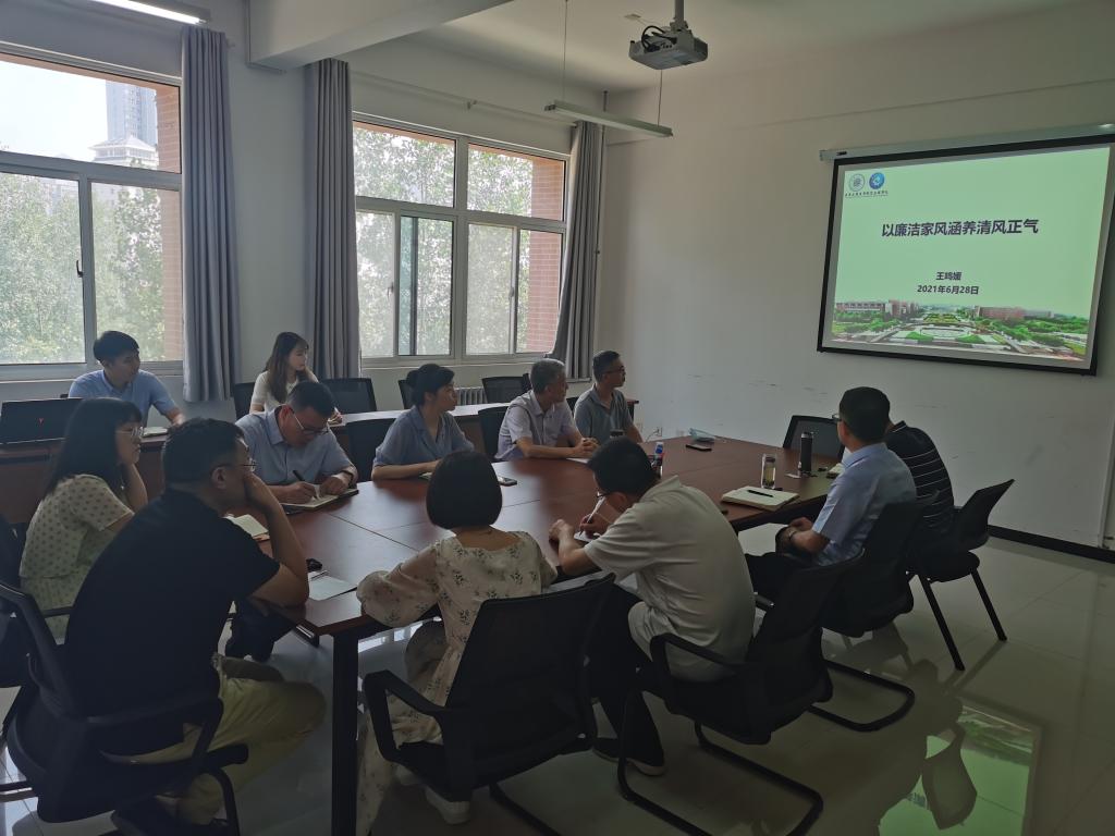 “学党史”开展纪律教育专题学习。6月初,学院召开党委会,就纪律教育学习宣传月活动作了安排部署。同时,召开党委理论学习中心组学习会,就党的纪律建设历史开展专题学习,学院党委书记王鸣媛讲授了题为《以廉洁家风涵养清风正气》的纪律教育党课。同时,学院组织师生党员代表观看了教育部举办的“明理增信 崇德力行”庆祝建党百年高校示范微党课第一讲。通过开展系列活动,引导党员干部知史爱党、知史爱国,不断强化理论武装,树牢“四个意识”,坚定“四个自信”,做到“两个维护”,自觉增强党性观念和宗旨意识。