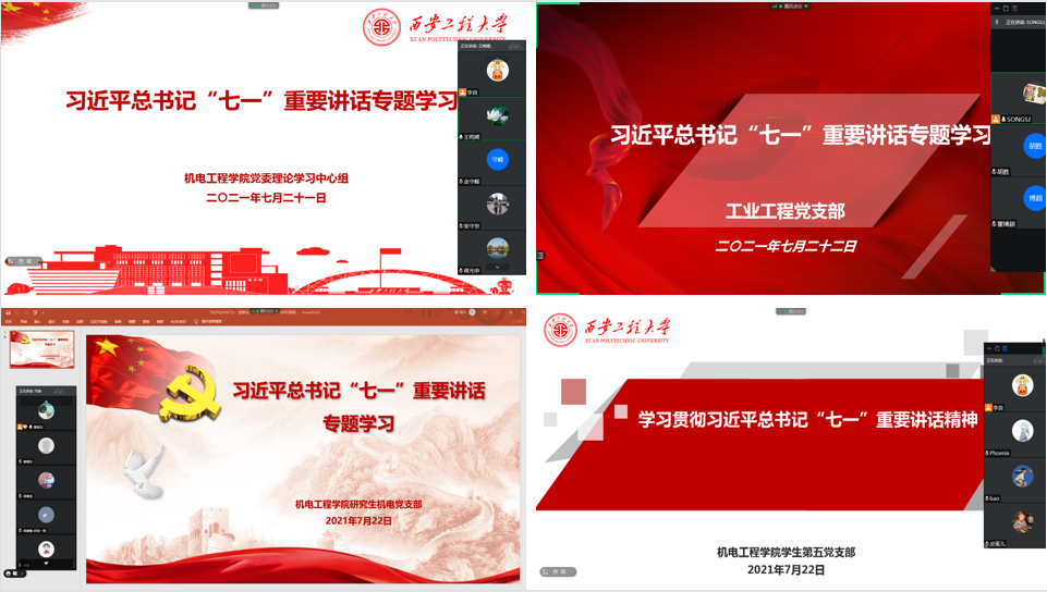 “党史+理论”,让专题学习习近平总书记重要讲话精神“热起来”。学院全体处级干部听取了省委党史学习教育宣讲团成员袁武振所作的《认真学习贯彻习近平总书记“七一”重要讲话精神,为实现中华民族伟大复兴努力奋斗》和校党委副书记、校长王海燕所作的《办好人民满意教育,加快学校高质量发展》的专题辅导。按照校党委书记马万清提出的学习贯彻要求,大家围绕“提升干部能力素质,推动学校事业高质量发展”的主题,进行了交流研讨;学院党委理论学习中心组成员收看了中国共产党成立100周年庆祝大会实况,并开展了两次习近平总书记“七一”重要讲话精神专题学习,与会人员结合自身工作和思想实际,先后作了交流发言;学院16个基层党支部围绕“七一”重要讲话精神,学原文、悟原理,结合党员的先锋模范作用发挥,发表了自己的体会和收获。同时,组织师生党员观看了教育部举办的“明理增信 崇德力行”庆祝建党百年高校示范微党课,观看并热议“七一勋章”颁授仪式、庆祝中国共产党成立100周年大会等。通过一系列活动,进一步拓宽了支部党员的学习路径,丰富了学习内容,深化了学习内涵,持续激发起师生党员爱党爱国爱社会主义的深厚情怀。