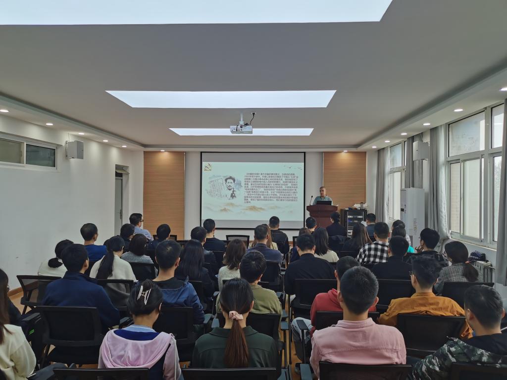 为深入学习贯彻习近平总书记“七一”重要讲话精神,扎实推进党史学习教育,进一步激发全院师生党员学习“四史”的积极性,2021年9月28日,澳门十大信誉网赌大全特邀请学校离退办党委书记张平老师为学院师生党员做了题为《歌声中的党史记忆》主题报告。学院全体教师党员和部分学生党员参加了报告会,报告会由学院党委书记王鸣媛主持。