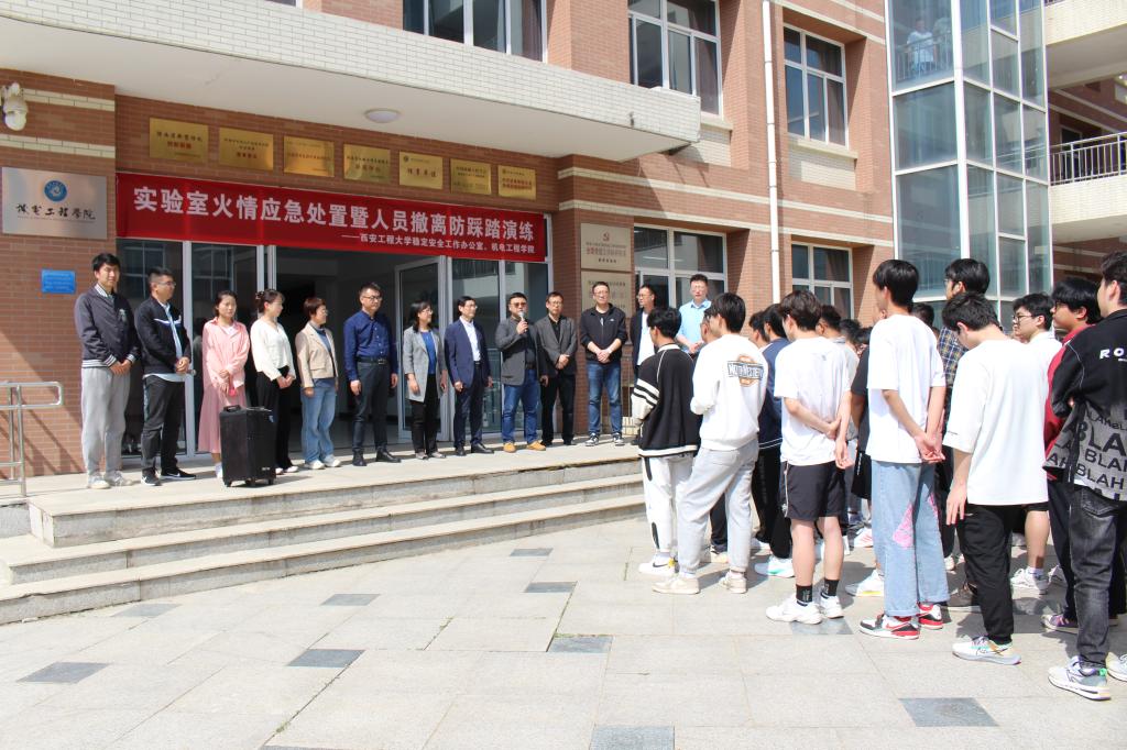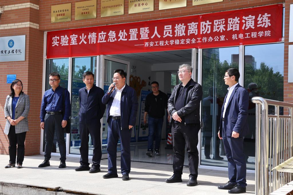 4月27日下午,十大信誉网赌稳定安全工作办公室、实验室管理处、保卫处、学生工作部(处)、研究生工作部联合澳门十大信誉网赌大全开展实验室火情应急处置暨人员撤离防踩踏演练,特邀西安建筑科技大学资源工程学院安全管理专家刘鹏刚莅临指导。校党委副书记井浩,校党委副书记、纪委书记辛永昌,副校长戴鸿等现场观摩。