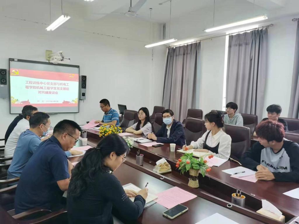 李博传达了学校《关于机关各部门与学院开展结对共建工作的通知》文件精神。陈永当简要介绍了工程训练中心及党支部的整体情况,分别从中心整体概况、实训教学、学科竞赛、师资队伍、人才培养、合作交流和中心发展等方面做了介绍,并提出了双方结对共建的一些可行内容。李菁菁分别从学院党委、支部情况和未来发展等方面简要介绍了澳门十大信誉网赌大全近年来在党建及党建引领工作方面所取得的成绩。阚佩结合自身的学习和成长简要回顾了在工程训练中心前身实习总厂金工车间的工作经历,勉励学生要加强学习,珍惜青春,甘于吃苦,开阔视野,注重理论与实践相结合,并针对学生就业、学业指导、创新创业和综合能力提升等方面提出了结对共建的活动方向。其他与会同志也积极交流发言,尤其是学生党员针对学生社团、学科竞赛等提出了一些建议意见,双方做了深入地交流分享。