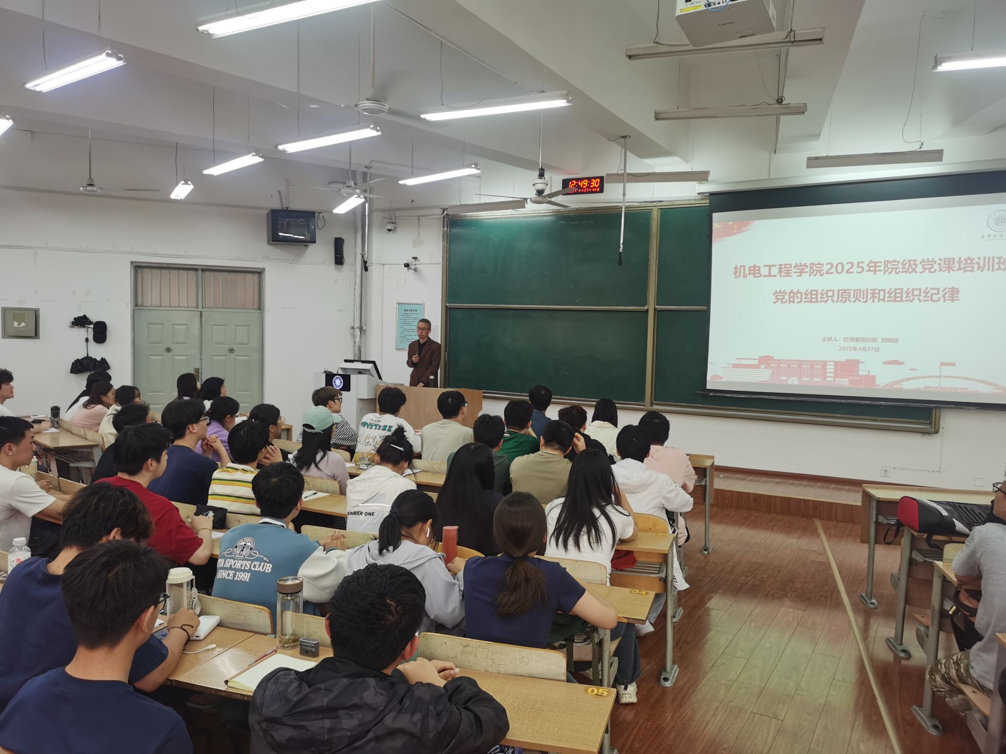 培训班第一讲,学院邀请了校党委组织部正处级组织员刘晓喆老师做了题为《党的组织原则和组织纪律》的主题党课,刘晓喆老师以哲学为基础,从个人和组织两个层面详细讲解了如何真正意义上做到思想入党,如何严格遵守党的组织原则和组织纪律。同时,他希望各位学员要努力学习经典,做好专业学习和通识学习。