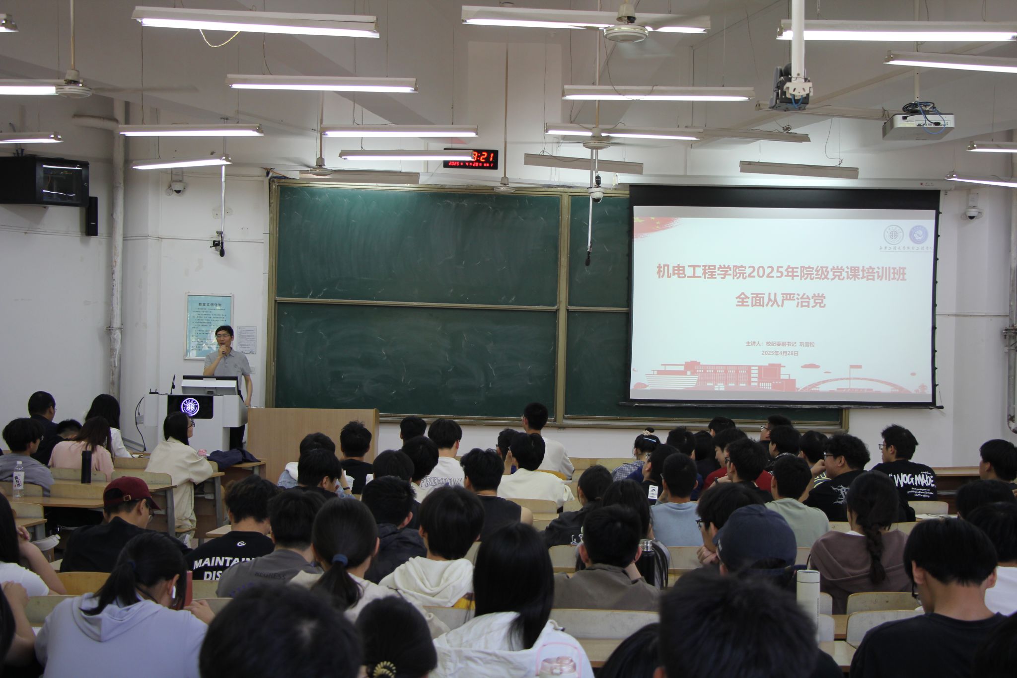 培训班第二讲,学院邀请了校纪委副书记巩雪松做了题为《全面从严治党》的主题党课,巩雪松老师全面系统的讲解了《中国共产党纪律处分条例》,希望各位学员严格要求自己,遵纪守法,争取早日站在党旗下。