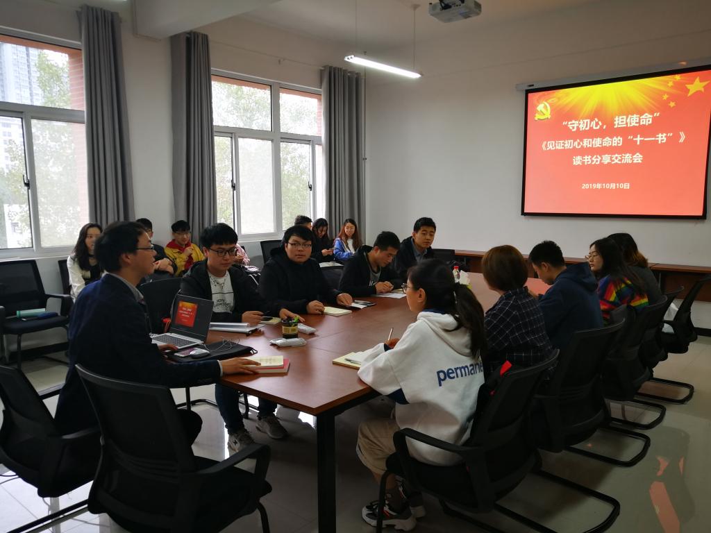 为深入开展“不忘初心、牢记使命”主题教育,弘扬爱国主义精神和革命精神,传承革命先烈“苟利社稷,不顾其身”的使命担当,坚定理想信念和道德追求,10月10日,澳门十大信誉网赌大全学生第三和第四党支部举办“守初心,担使命”——《见证初心和使命的“十一书”》读书分享交流会。会议由学生第三党支部书记秦方刚主持。