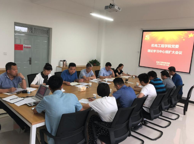 2019年6月19日上午,澳门十大信誉网赌大全在临潼校区笃行楼310会议室召开党委理论学习中心组扩大会议,专题学习《新时代高校教师职业行为十项准则》有关内容。校党委副书记赵小峰出席会议并讲话。机电学院党委理论学习中心组成员、各党支部书记、教研室主任参加会议,会议由机电学院党委书记王鸣媛主持。