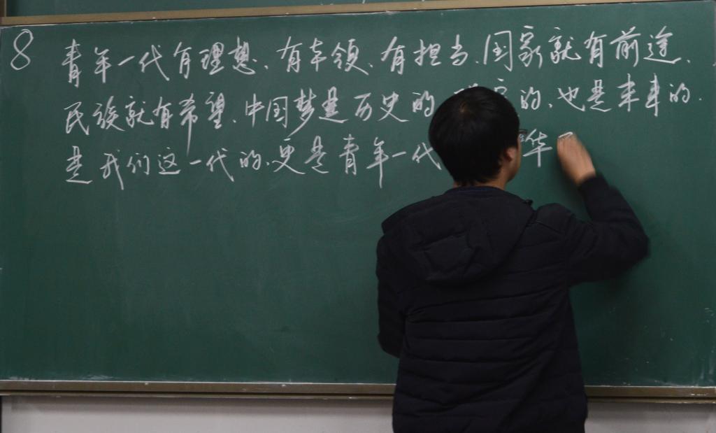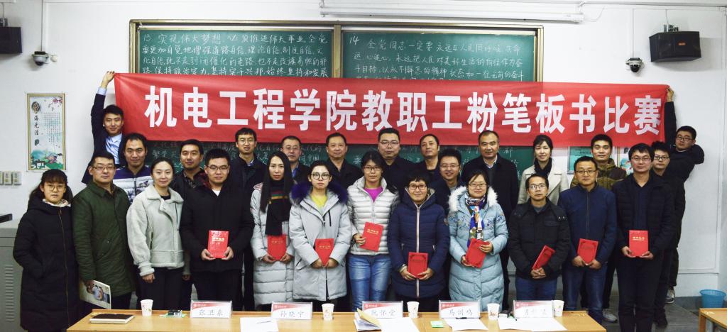 2018年12月7日中午,澳门十大信誉网赌大全首届教职工粉笔板书比赛决赛在临潼校区教学楼A-132举行,经各党支部初赛选拔进入决赛的16名选手参加了比赛。校党委副书记赵小峰亲临活动现场。