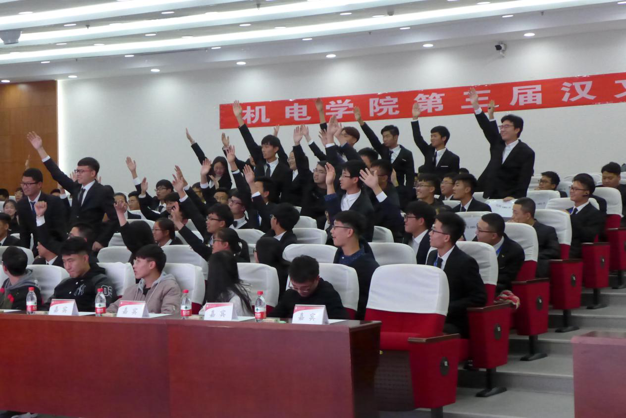 2018年11月5日,澳门十大信誉网赌大全第三届“汉文化大赛”在临潼校区图书馆一楼报告厅举行。学院2018级新生和校汉文化协会成员参加了比赛。18级学生辅导员刘鹏、校汉文化协会会长焦瑜欣到场助威。