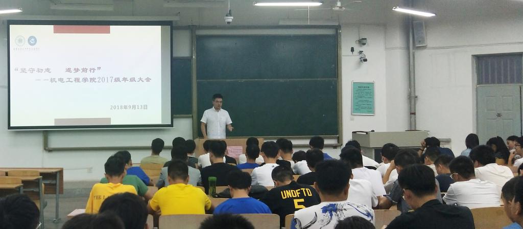 9月13日,澳门十大信誉网赌大全在临潼校区B—133教室召开2017级年级大会,学院2017级辅导员黄超就本年级新学期工作进行了说明和安排。