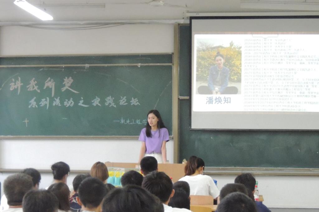 5月29日晚,澳门十大信誉网赌大全成功举办以“凝聚青春智慧,聆听榜样声音”为主题的“讲我所奖”经验分享系列活动。活动由“学霸讲堂”、“实践论坛”两个子活动构成,分别在临潼校区A202、A204教室同时进行。学院17级辅导员黄超、学院学生会主席郭星、优秀学生代表魏孟、李平、罗文量、潘焕知、郭安琪等十位同学及来自17级的200余名同学出席参与了本次活动。