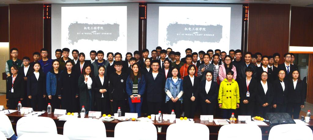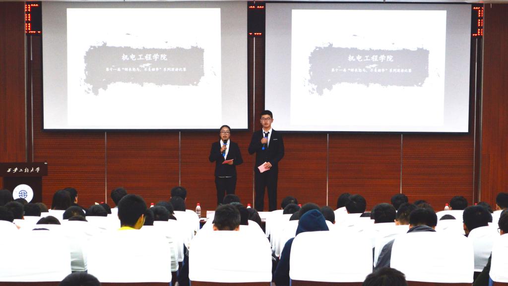 为了提高新生的演讲能力和表达能力,丰富校园文化生活,彰显新时代大学生的朝气与活力,机电学院团总支于2017年11月8日在图书馆二楼报告厅组织了以“鲜衣怒马,不负韶华”为主题的演讲比赛。学工部郝树豪、电信学院辅导员黄木委、管理学院辅导员李根、人文学院辅导员刘杨扬、服装学院辅导员王丽丽、计算机学院辅导员张鑫及机电学院辅导员黄超作为嘉宾与评委、选手、观众共计300余人出席了本次活动。