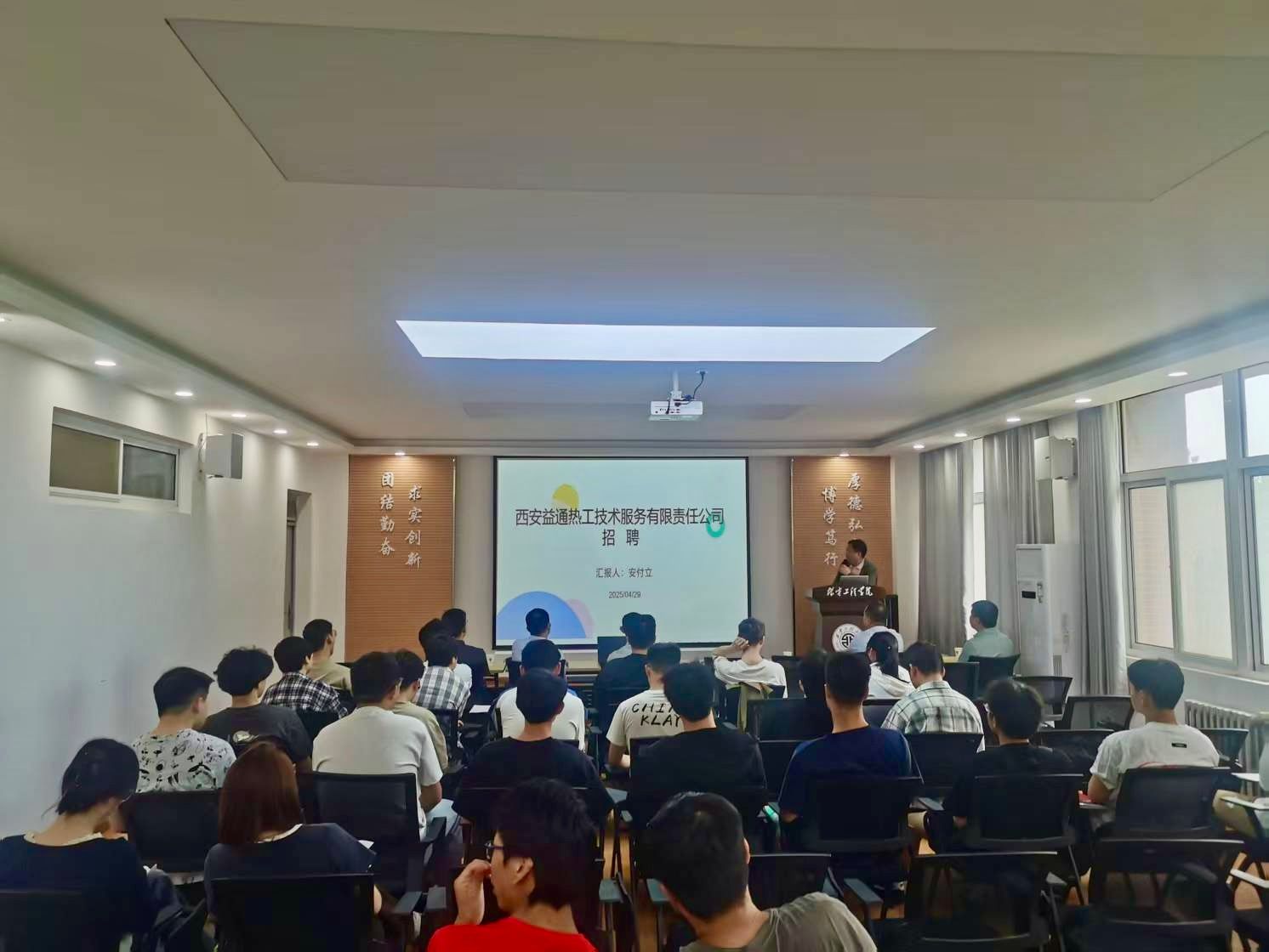4月29日,澳门十大信誉网赌大全举办了西安益通热工技术服务有限公司专场招聘宣讲会,共有来自机电学院,材料学院、计算机学院的40余名毕业生参加。