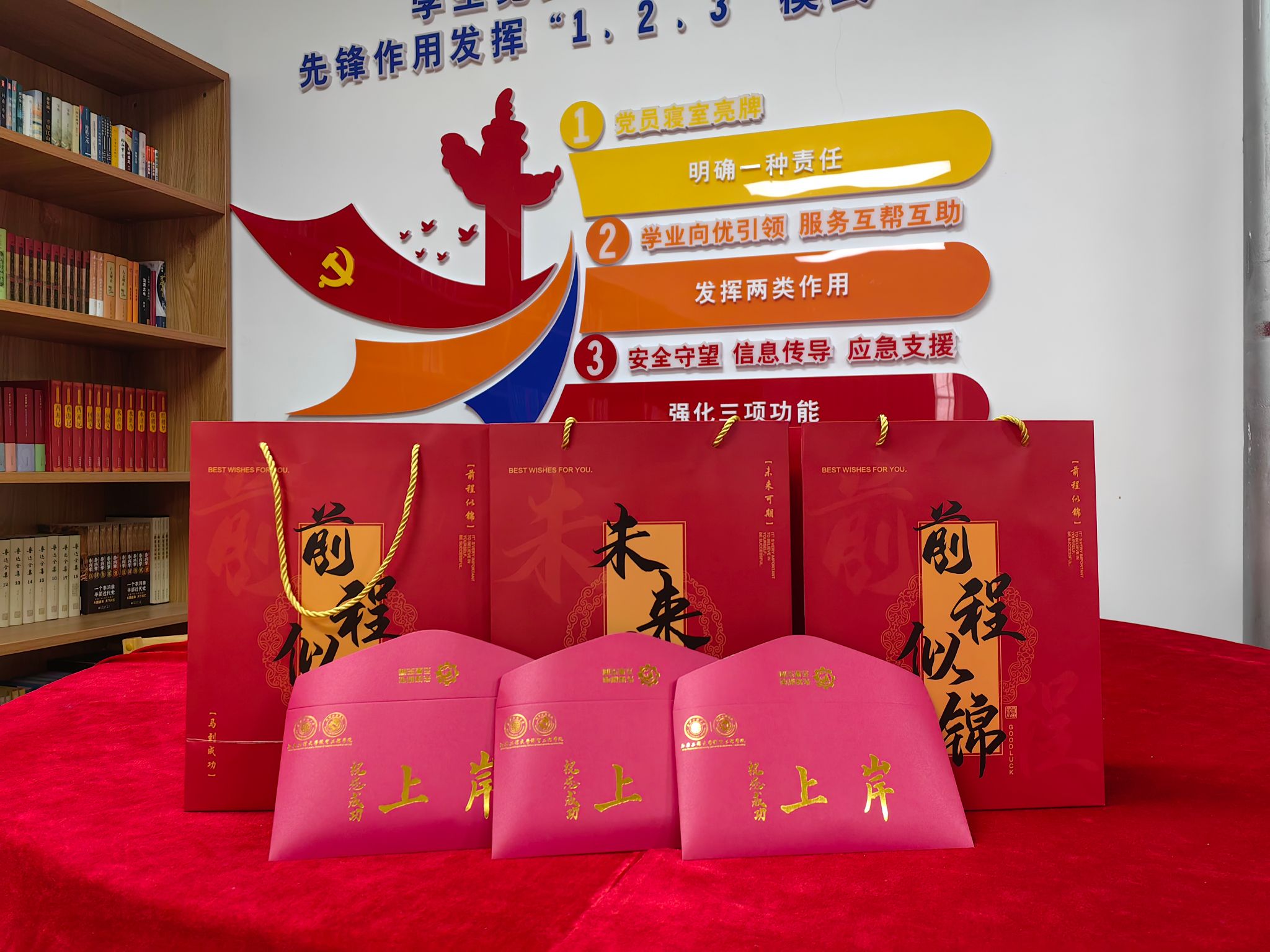 在“一站式”社区,“三全育人”导师杨磊鹏、盛晓超、刘伟与考研学生代表亲切交流,了解同学们的复习进度、生活状况与实际困难,结合自身经验在考研冲刺阶段的复习策略、时间管理等方面给予具体指导。冯翊代表学院肯定同学们的刻苦努力,叮嘱大家保持良好作息、劳逸结合、诚信应考,以最佳状态迎接挑战。活动中,老师们为学生送上精心准备的“暖心祝福包”,令学子们倍感温暖,大家纷纷表示将坚定信心,坚持到底。