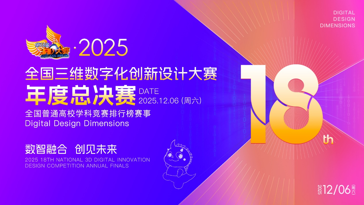 全国3D大赛是全国普通高校大学生竞赛排行榜榜单赛事之一,由国家制造业信息化培训中心等单位共同主办。本届大赛以“数智融合 创见未来”为主题,设置“数字工业、数字文化、数字人居、元宇宙”四个开放赛项,同步设置 AI+3D、机器人、低空经济、智能制造等前沿领域专项赛,聚焦数智技术与产业场景的融合创新,为“新质生产力人才”培养注入了新动力。