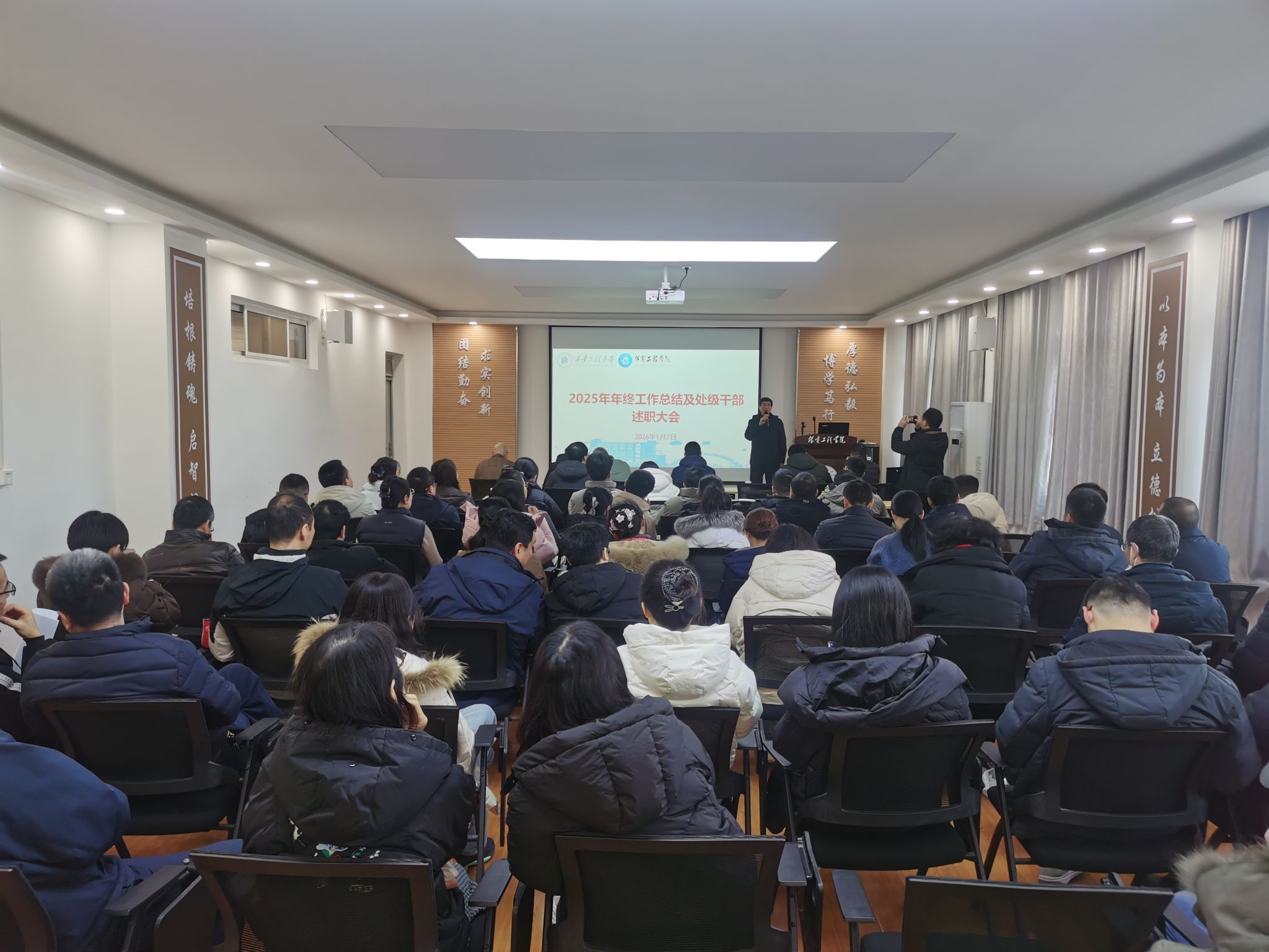 2026年1月7日,澳门十大信誉网赌大全召开2025年度工作总结及处级干部述职大会。学院联系校领导、党委委员、副校长朱永民、校党委组织部正处级组织员刘晓喆、学院全体班子成员和全体教职工参加了大会。大会由学院党委书记阚佩主持。