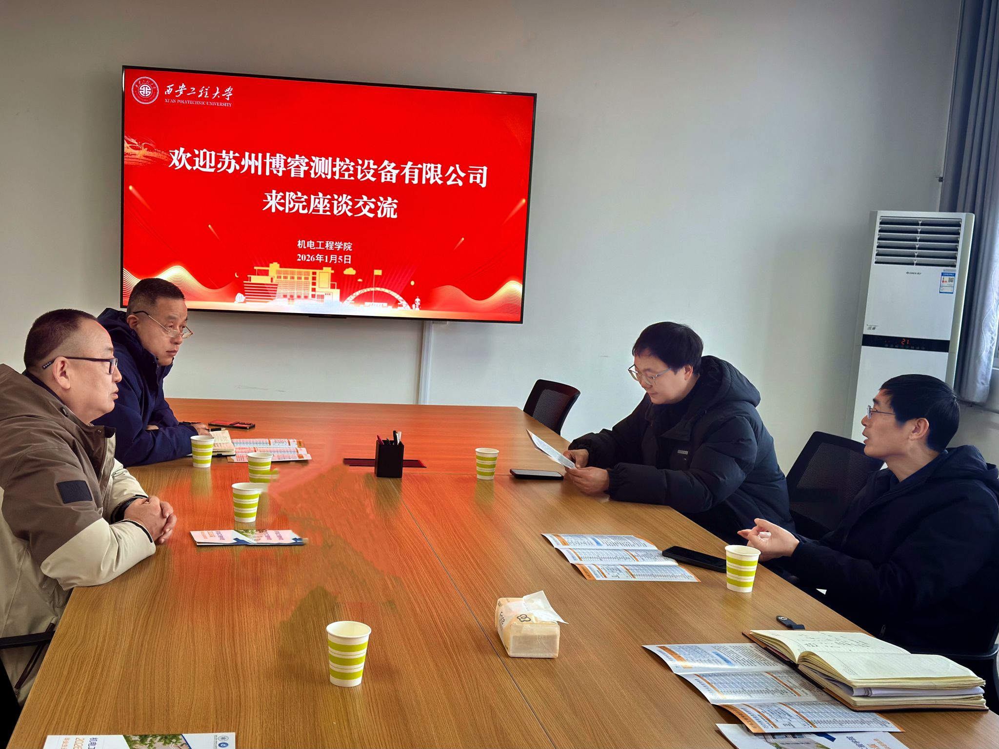 1月5日,澳门十大信誉网赌大全机制1988级校友、苏州博睿测控设备有限公司西安销售分公司总经理刘永军一行3人返校交流,与澳门十大信誉网赌大全开展校企合作座谈,并举办2026届校园招聘专场宣讲会。澳门十大信誉网赌大全党委书记阚佩,相关辅导员、毕业生参加活动。