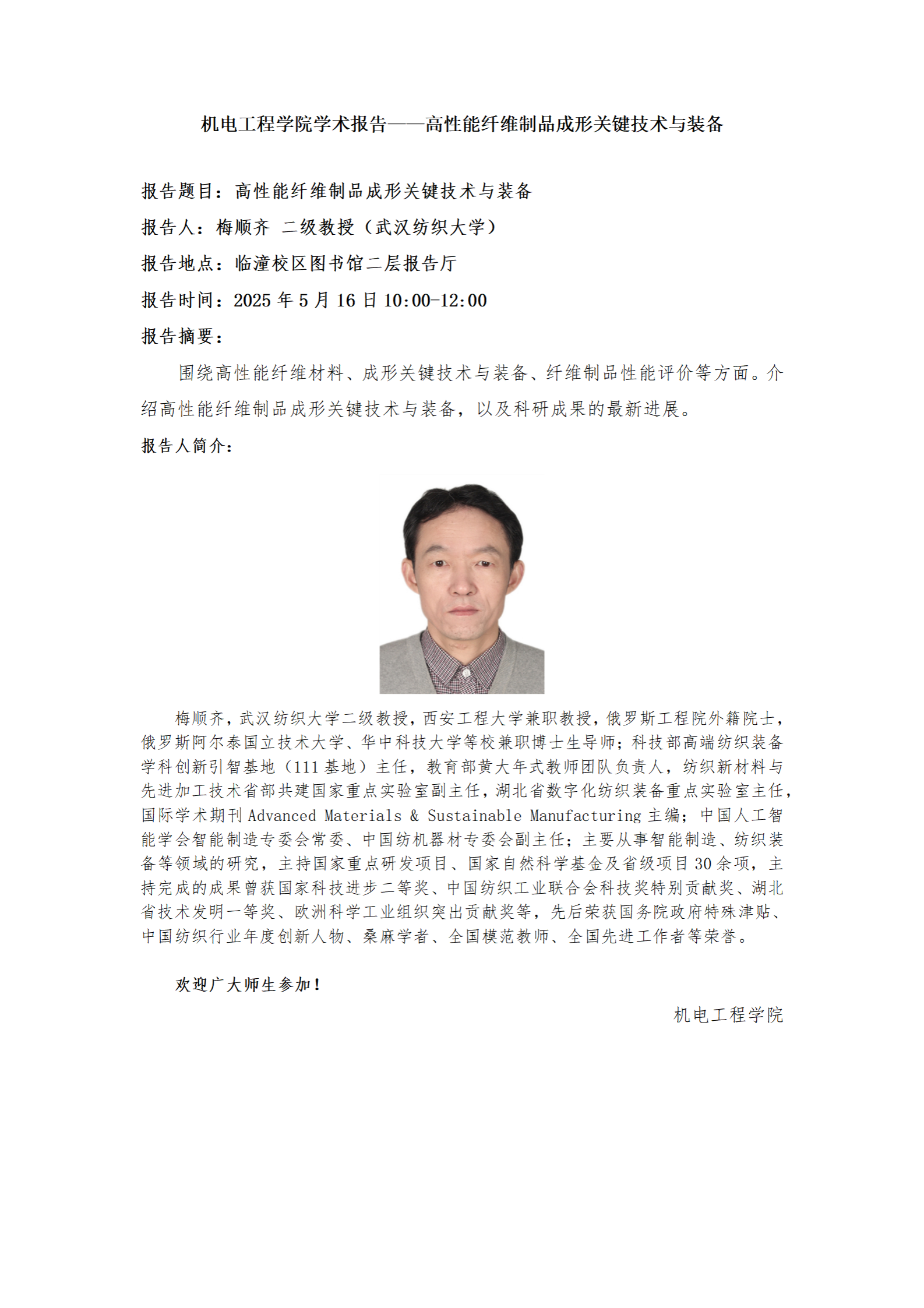 澳门十大信誉网赌大全学术报告——高性能纤维制品成形关键技术与装备