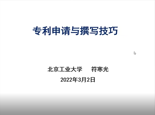 2022年3月2日下午,“陕西省百人计划”特聘教授、北京工业大学符寒光老师受澳门十大信誉网赌大全邀请,作了题为“专利申请与撰写技巧”的学术报告。报告采用腾讯会议形式进行,澳门十大信誉网赌大全和材料工程学院的近70名师生聆听了本次讲座。