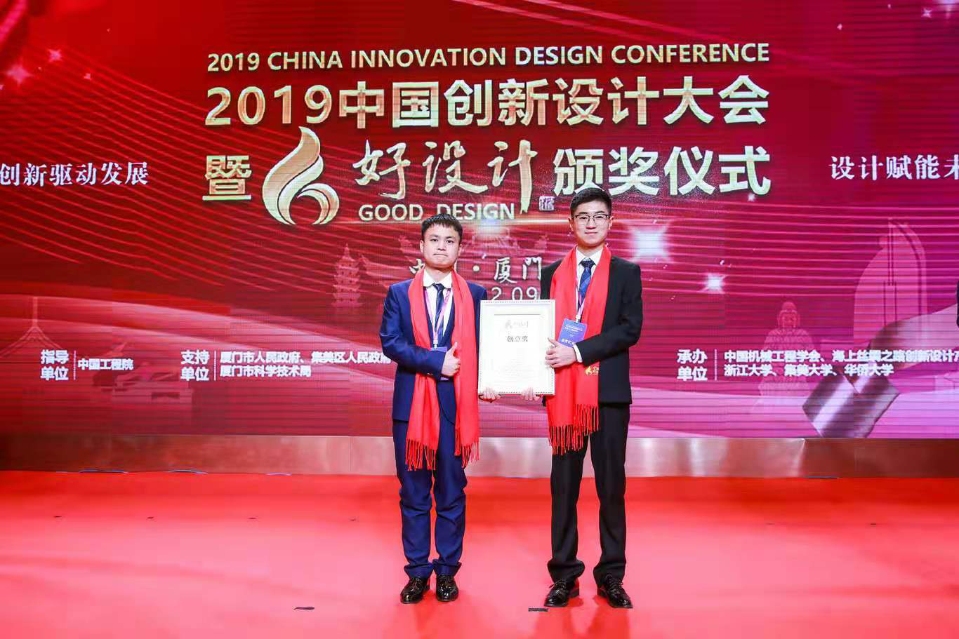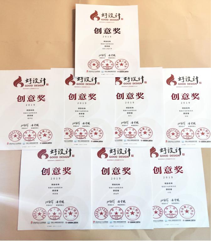12月9日,以“创新驱动发展 设计赋能未来”为主题的2019年中国创新设计大会暨好设计颁奖典礼在福建厦门举行。十大信誉网赌澳门十大信誉网赌大全管声启教授、刘文慧副教授指导,研究生张凡、肖旭等五位同学设计的作品《智能纱线抓取系统》荣获2019好设计国家创意奖。