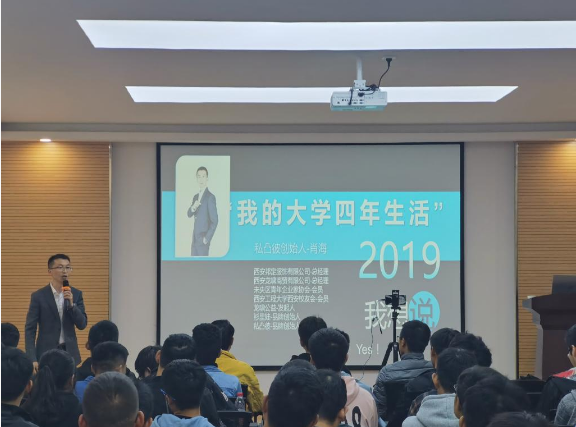 日前,澳门十大信誉网赌大全在7-307报告厅举办“我的大学四年生活”讲座。主讲人是2008级纺织工程肖海,现任西安邦定服饰有限公司总经理、西安龙啸商贸有限公司总经理。机电学院党委副书记冯涛、学工办主任杜静、辅导员李良和2019级、2017级的100余名学生参加了讲座,报告会由冯涛主持。