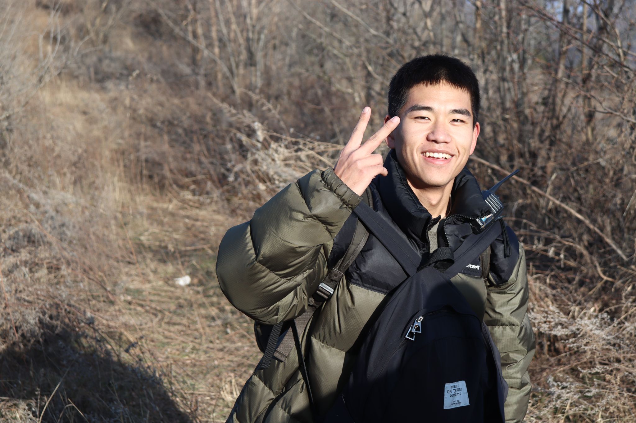 无悔-携笔从戎。从小就憧憬军旅生活的他,入学之后,在学校老师、同学的影响和帮助下,于2021年9月选择了参军入伍。在部队他刻苦训练、认真工作,即使双手因训练被磨得布满水泡,依旧坚守自己的战位。同时参与了“闪电行动”“联合利剑”演习等军事行动,他不怕苦不怕累,在任务中始终践行着军人本色,被授予“四有优秀士兵”(记嘉奖1次)。